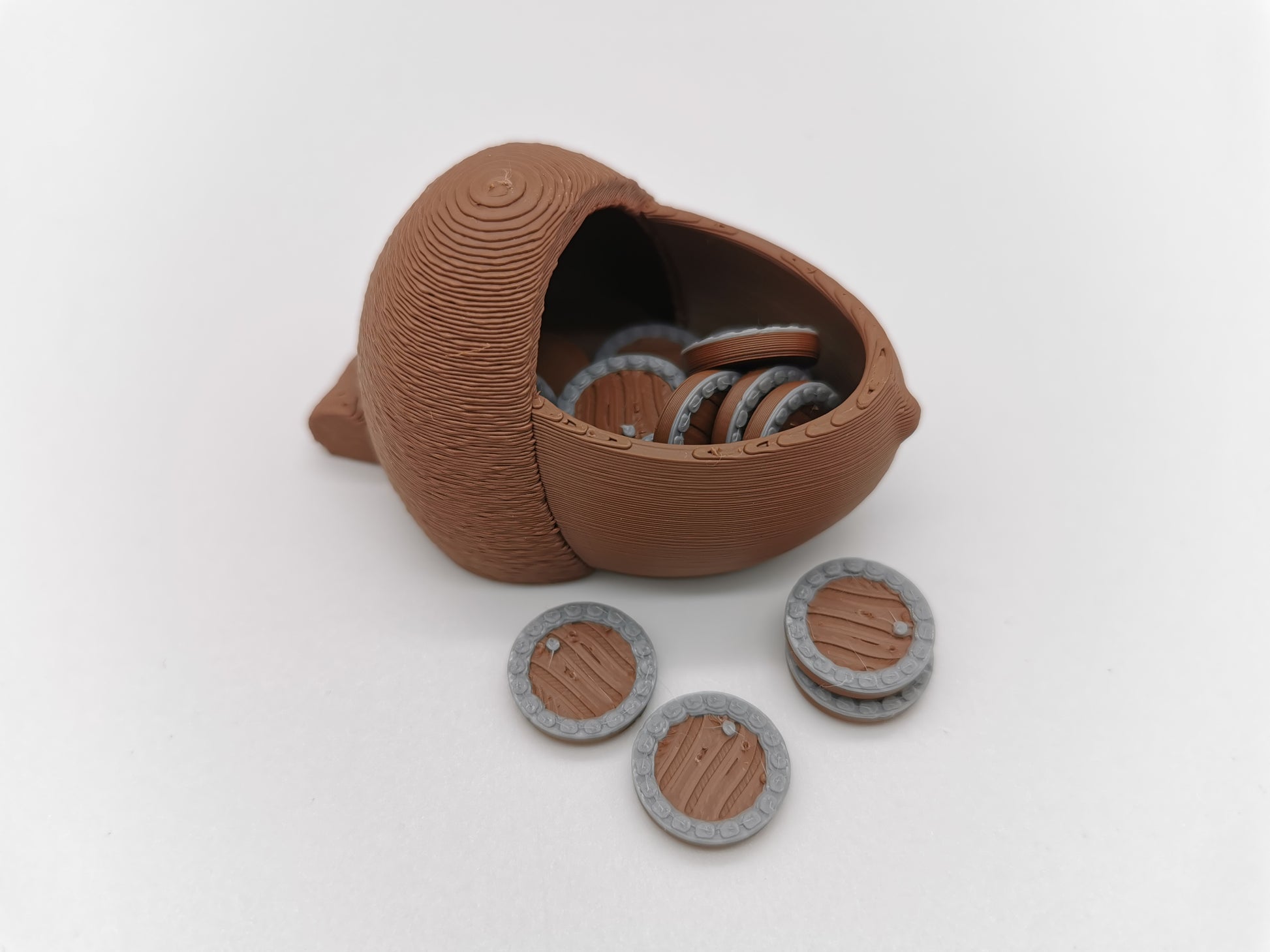 Wir haben nicht nur die Grundspiel-Variante für dich entworfen, sondern auch die Goldenen Besetzt-Marker für die Erweiterung "Newleaf". Du möchtest deine Marker dekorativ auf den Spieltisch stellen? Gerne, in unserer Eichel-Schale kommen sie wunderbar zur Geltung.