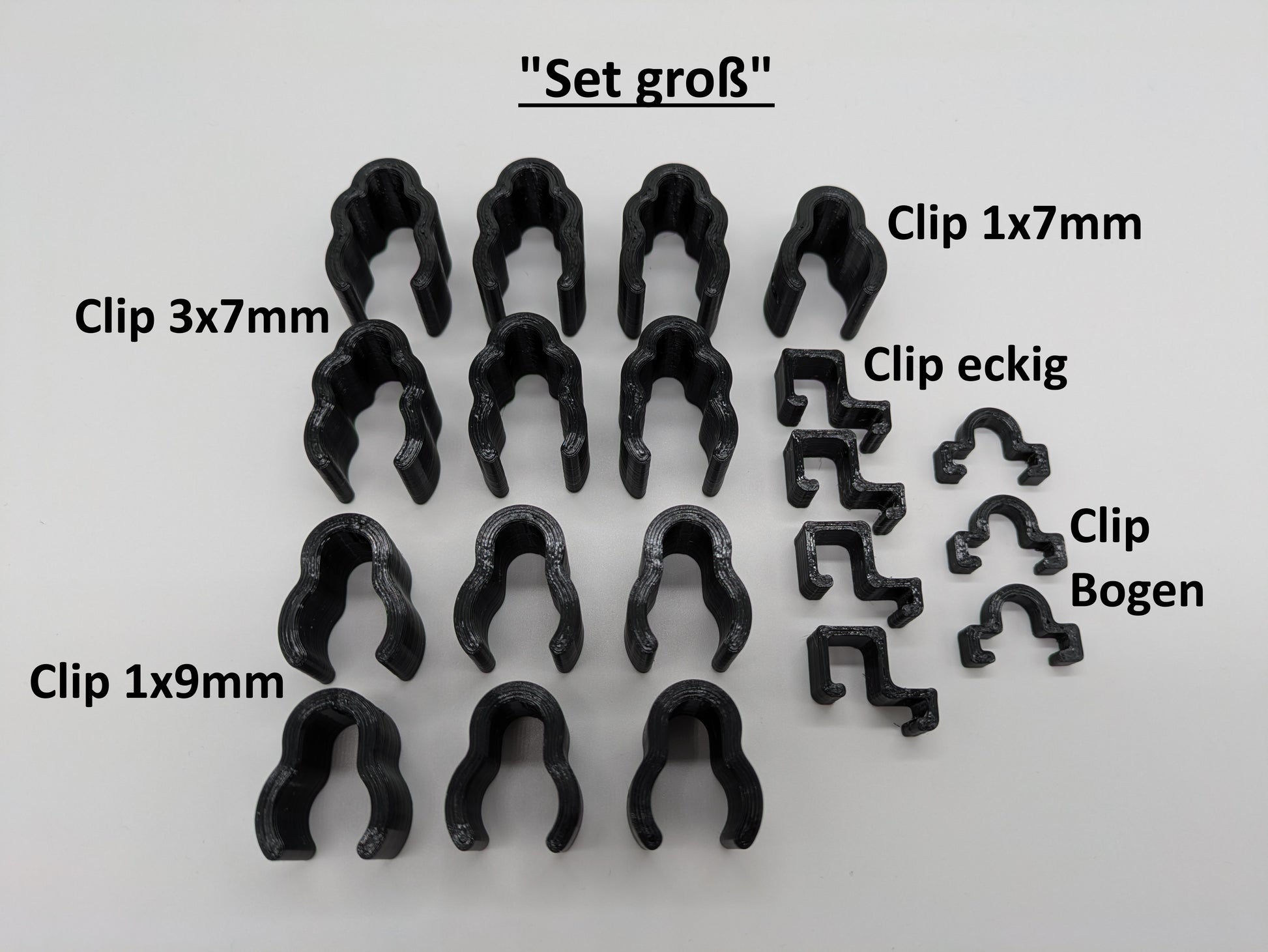 Je nach Einsatz kannst du Clips für ein oder mehrere Kabel in unterschiedlichen Kabelstärken wählen. Für gängige Geberkombinationen haben wir bereits praktische Sets für dich zusammengestellt: