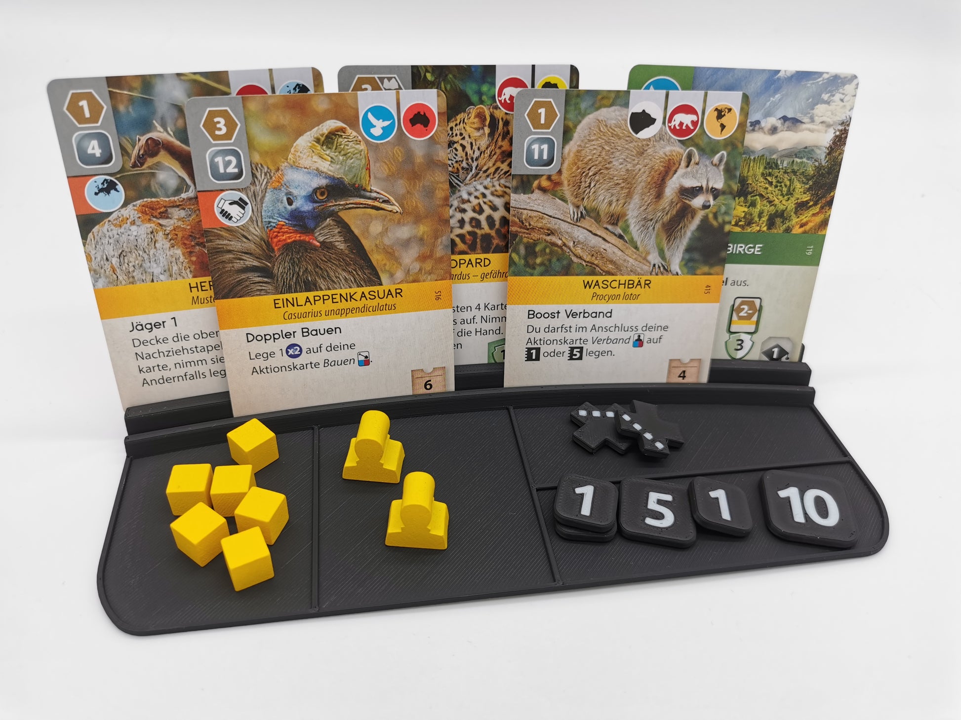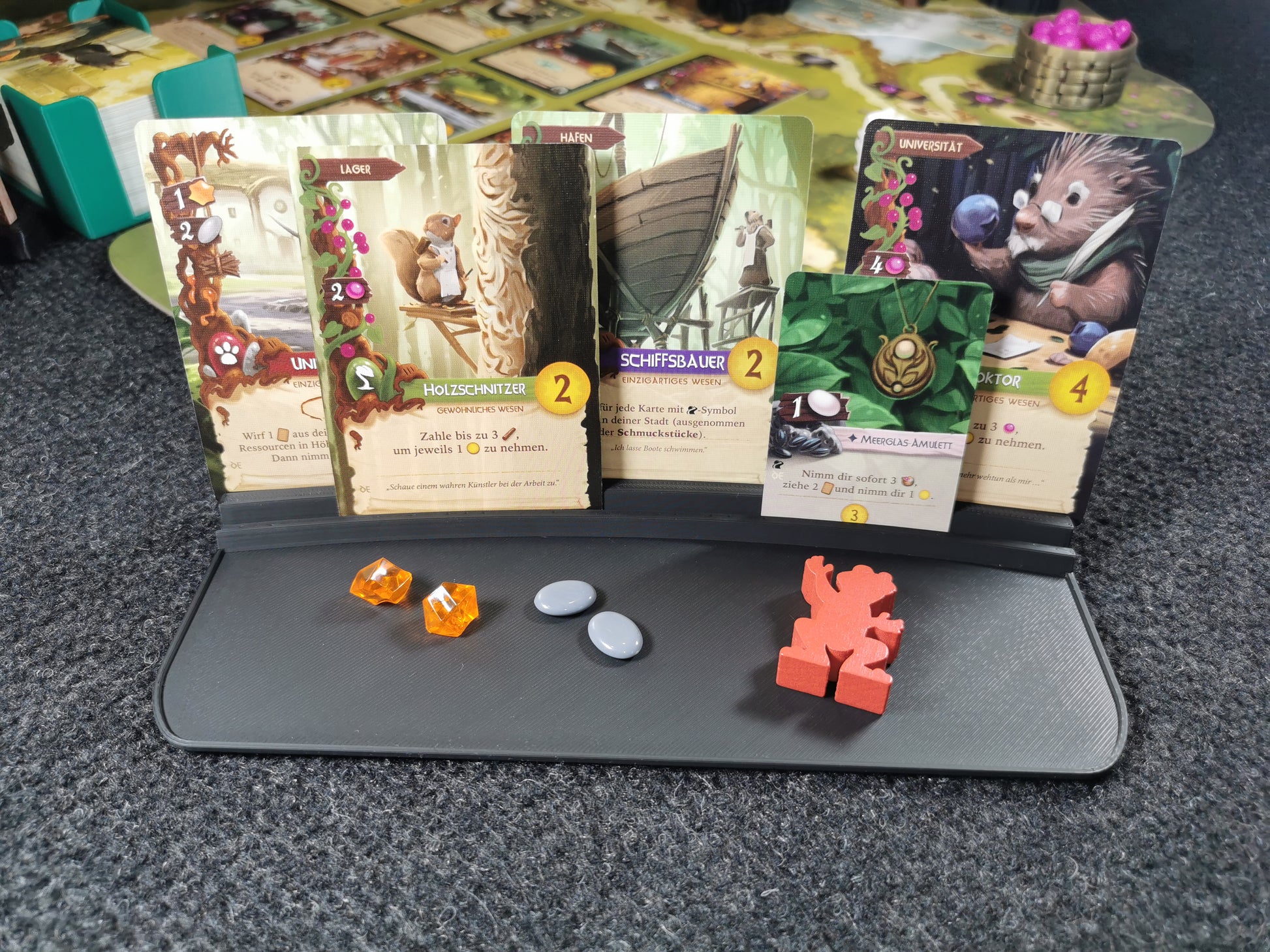 Mit diesem Karten- und Tokenhalter hast du beim Spielen die Hände frei.