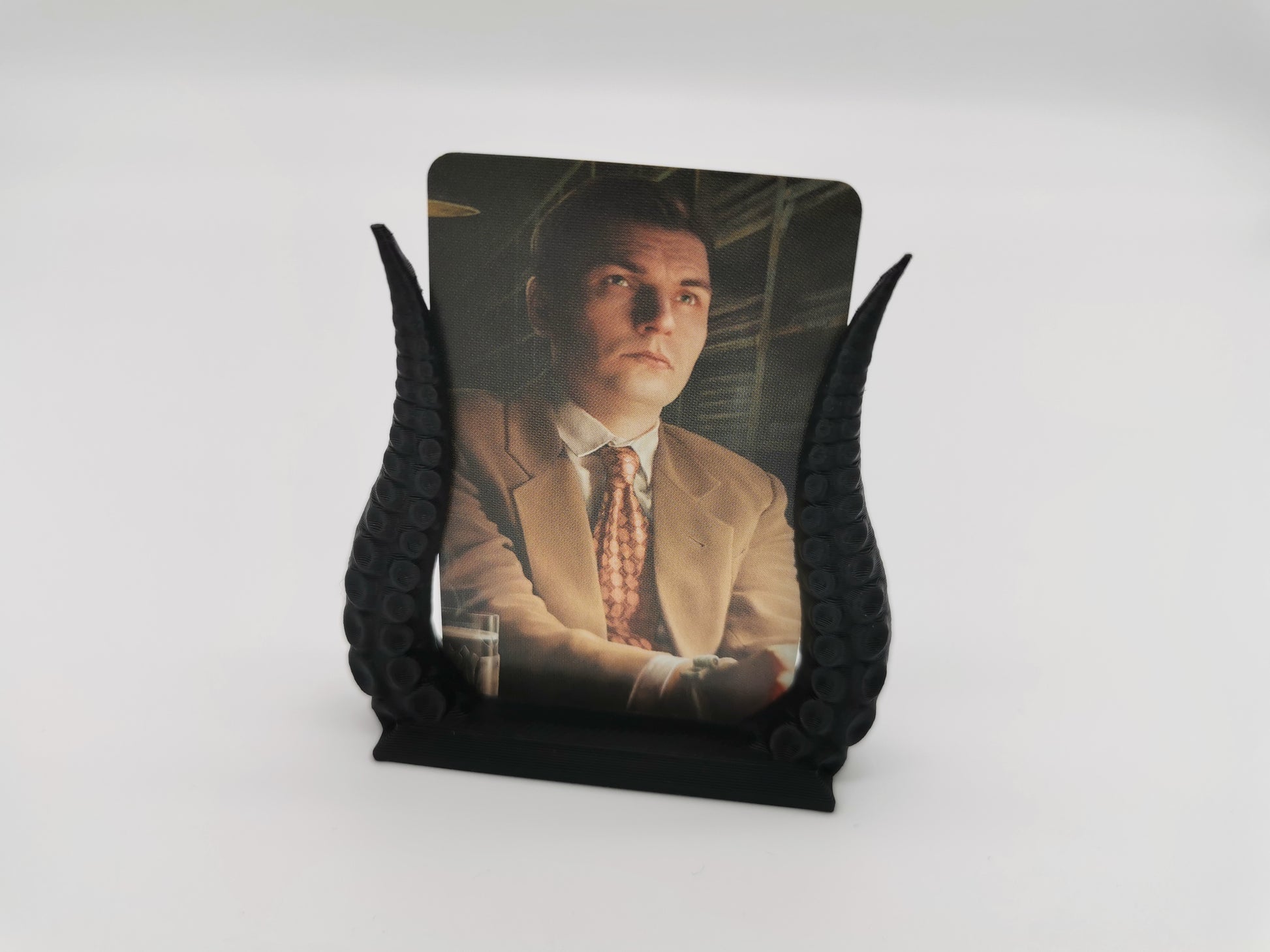 Diese Kartenhalter für die kleinen Ermittlerkarten von Arkham Horror LCG bringen das richtige Spielgefühl auf den Tisch. Sie halten die Ermittlerkarten auch in passenden Kartenhüllen/Sleeves.