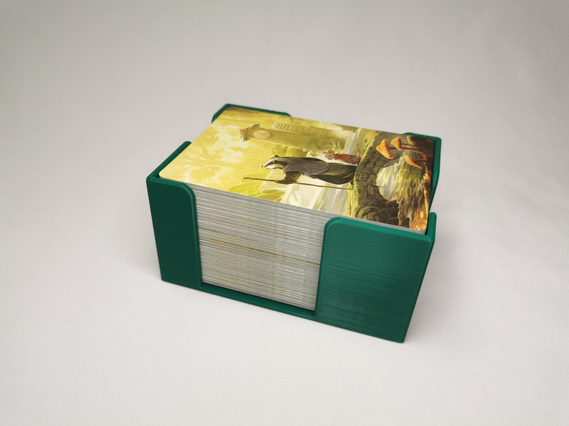 Der Kartenhalter sorgt dafür, dass alle Karten des Grundspiels ordentlich aufgestapelt bleiben. So lässt sich das Spiel schnell auf- und abbauen, und der Spieltisch wirkt aufgeräumt und übersichtlich. In deiner frei wählbaren Wunschfarbe sieht er außerdem schön aus.