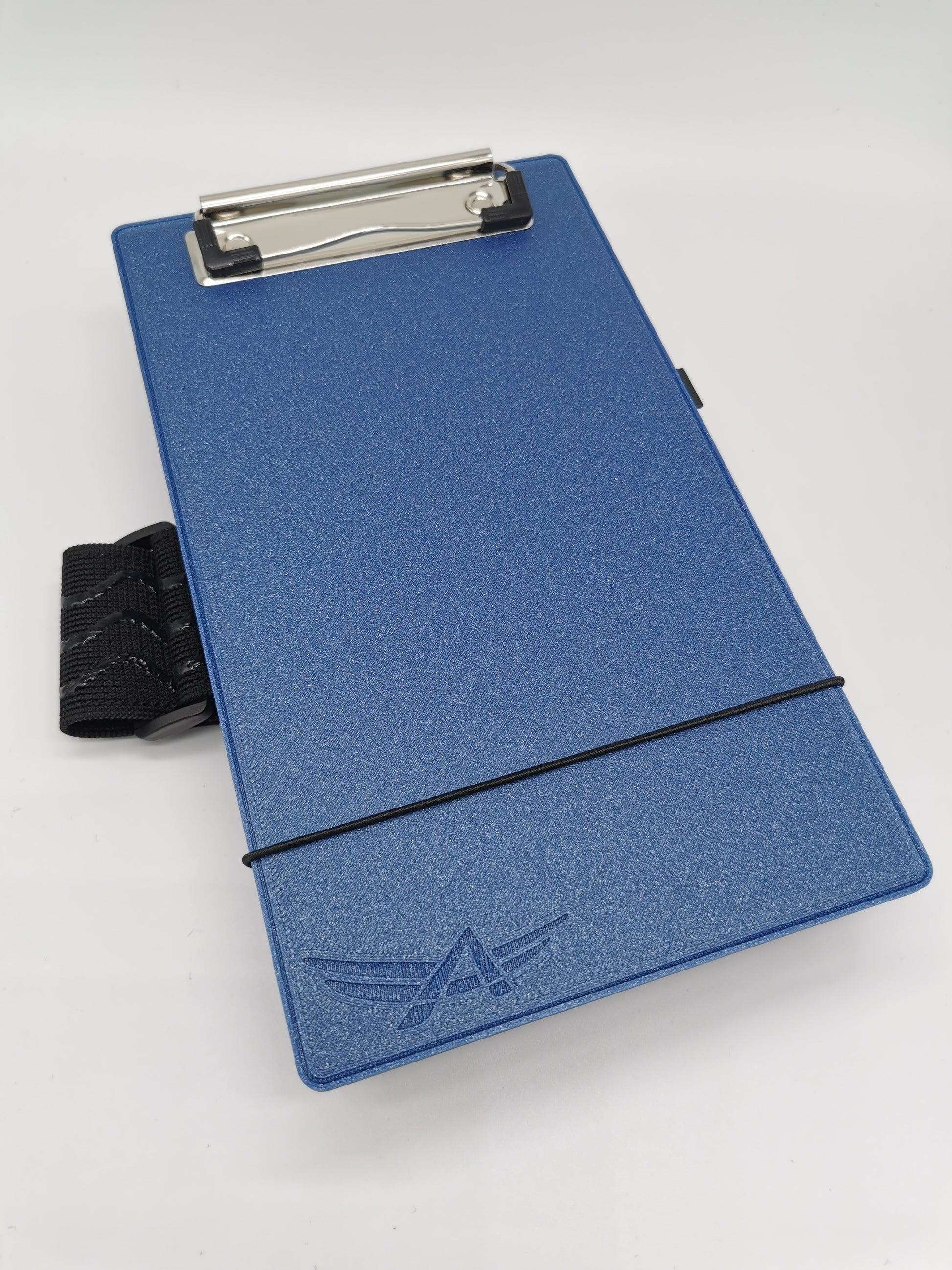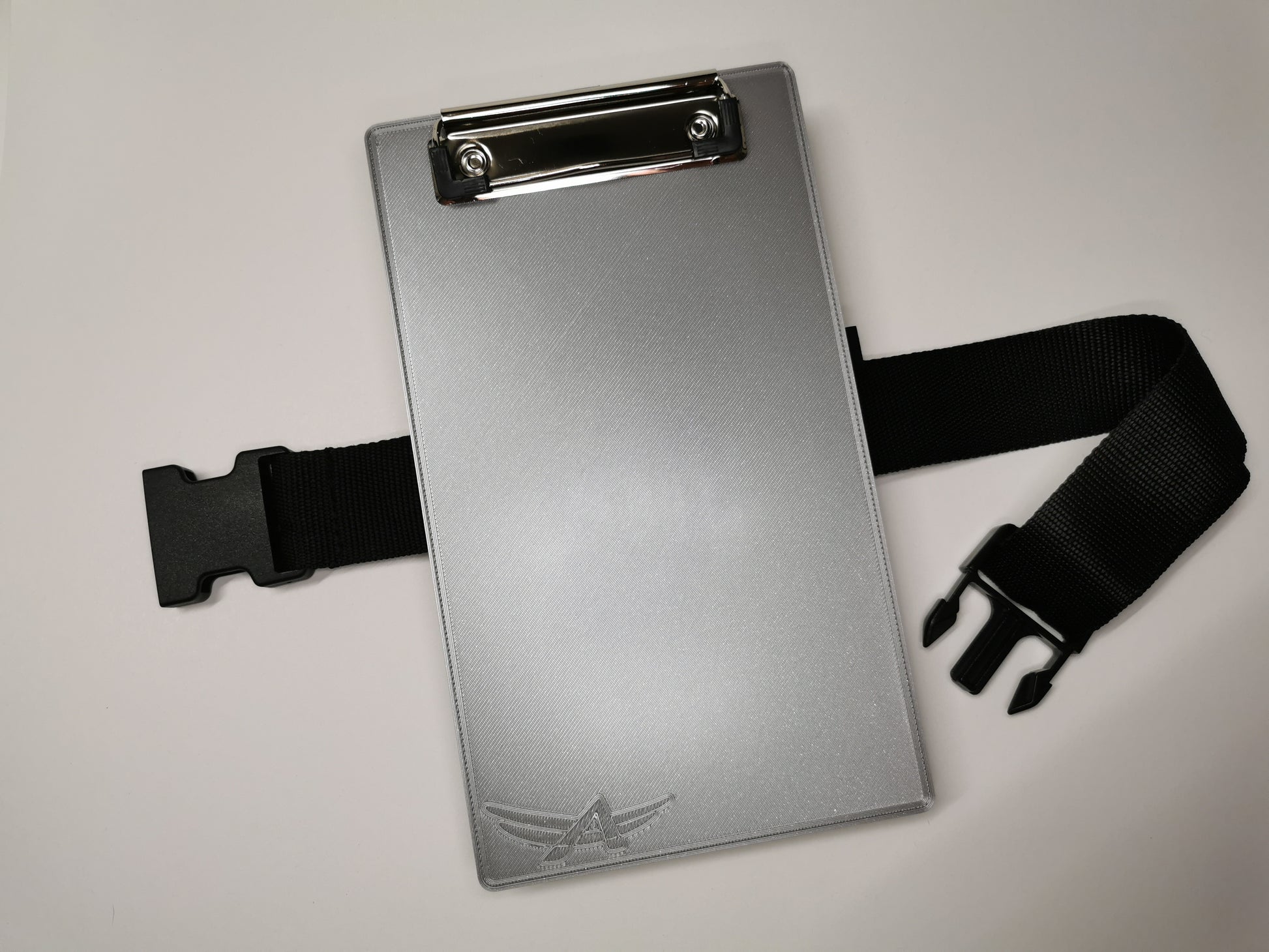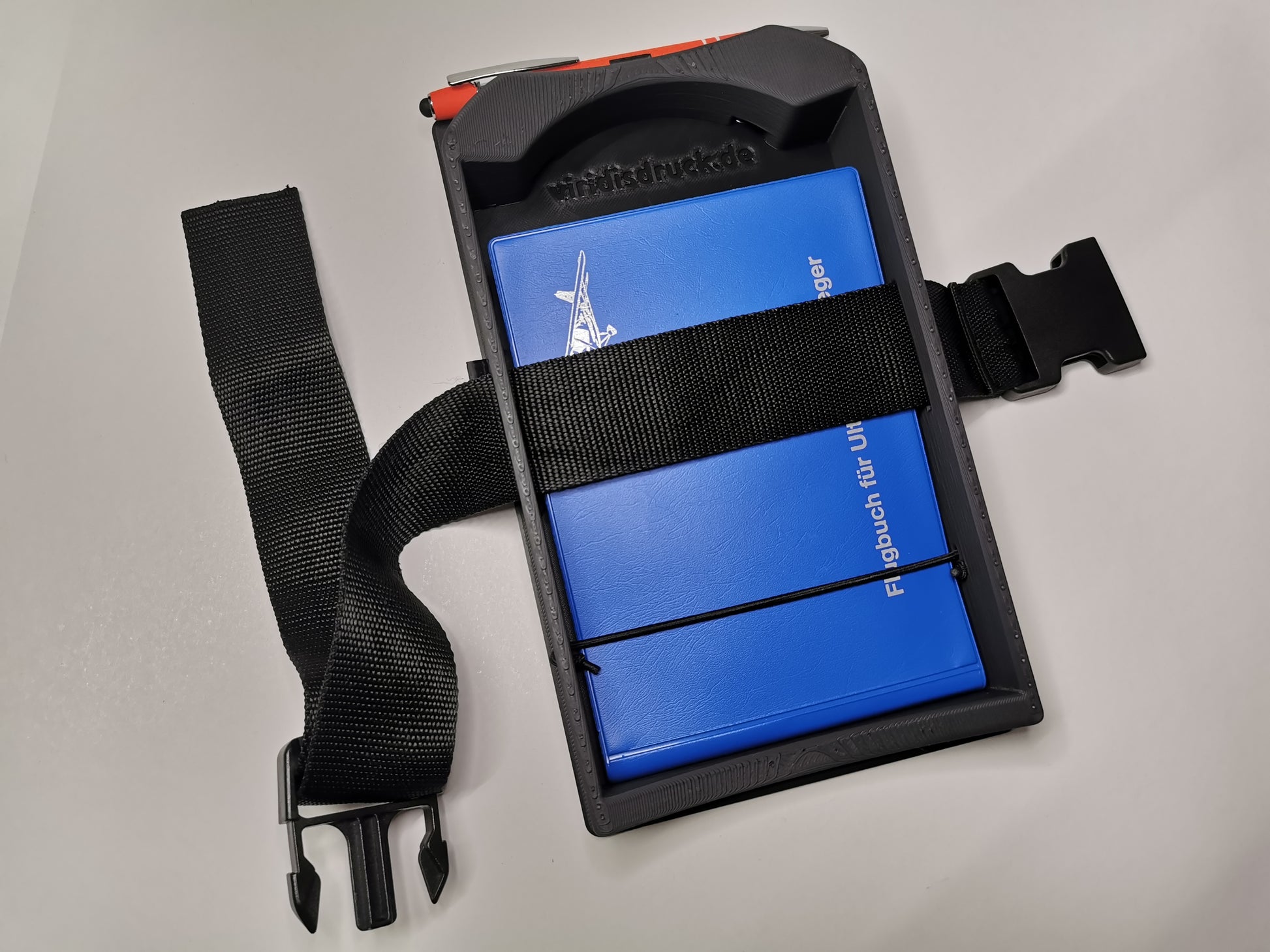 Ausgestattet mit zwei Stifthaltern in unterschiedlichen Größen (oben und an der rechten Seite), einem verstellbaren Befestigungsgurt, einem 'Fach' für dein Flugbuch und optionalem universalem Handyhalter, ist es ein schlicht gehaltenes, aber durchdachtes Zubehör - für jeden Piloten einfach das Richtige! Die neueste Version hat nun noch ein zusätzliches Gummiband über der Schreibfläche - so bleibt das Papier besser an Ort und Stelle.