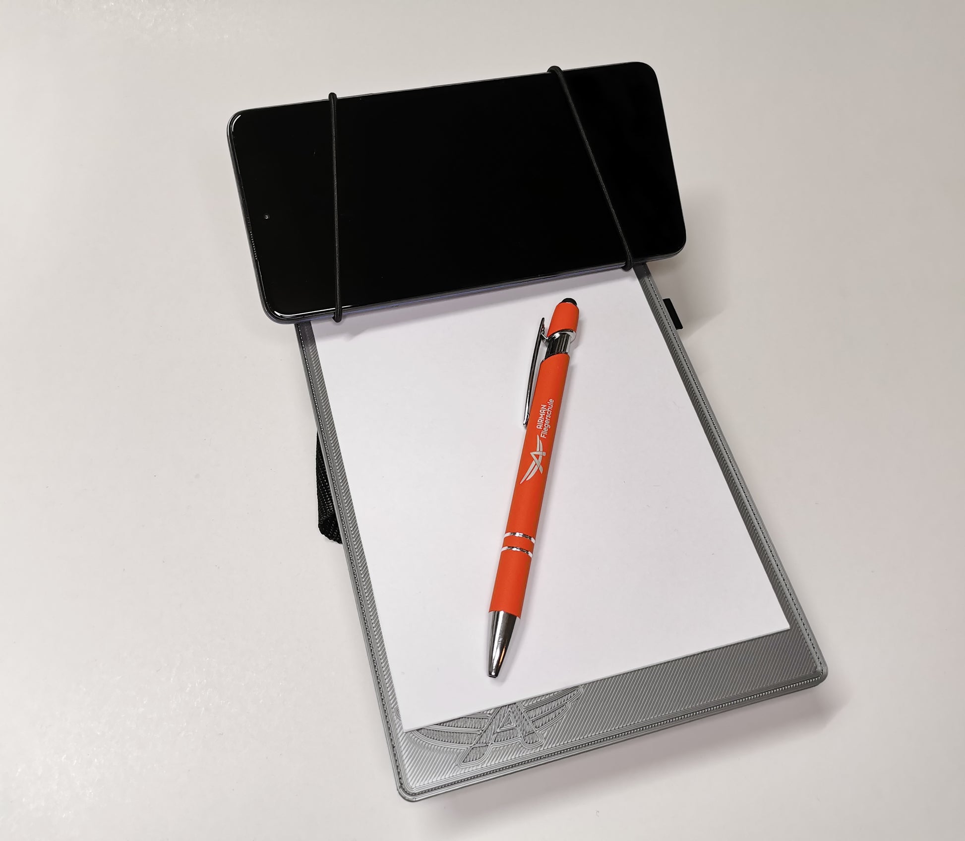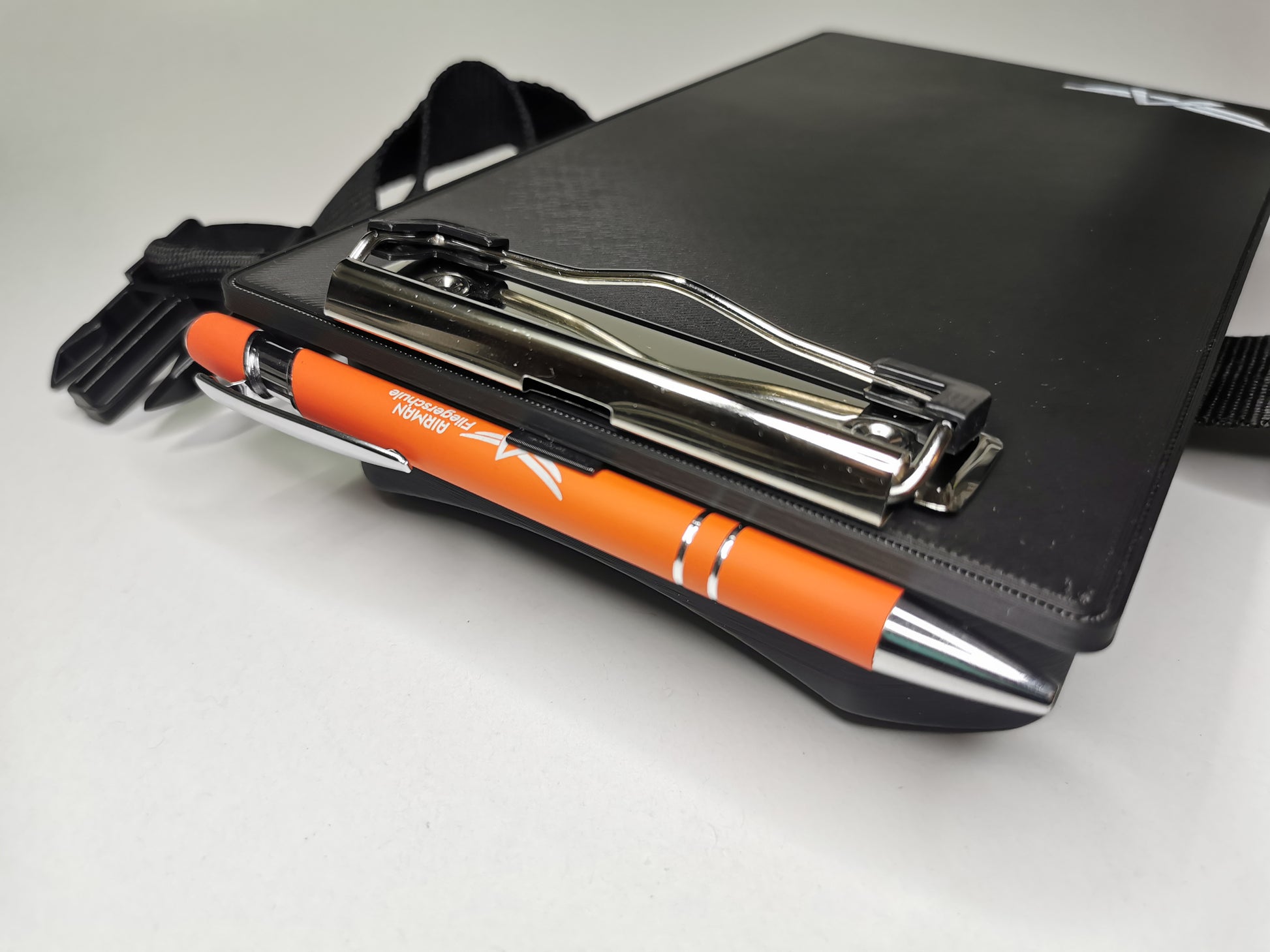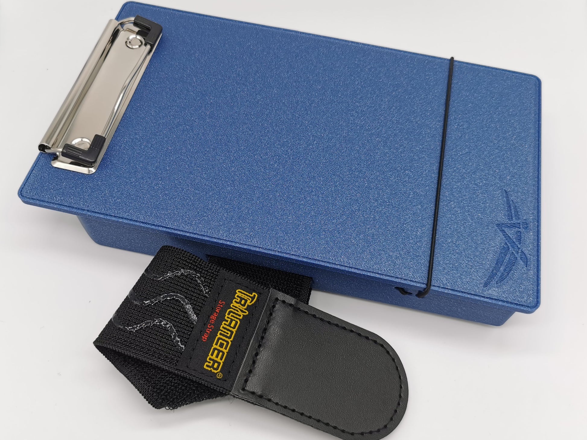 Ausgestattet mit zwei Stifthaltern in unterschiedlichen Größen (oben und an der rechten Seite), einem verstellbaren Befestigungsgurt, einem 'Fach' für dein Flugbuch und optionalem universalem Handyhalter, ist es ein schlicht gehaltenes, aber durchdachtes Zubehör - für jeden Piloten einfach das Richtige! Die neueste Version hat nun noch ein zusätzliches Gummiband über der Schreibfläche - so bleibt das Papier besser an Ort und Stelle.