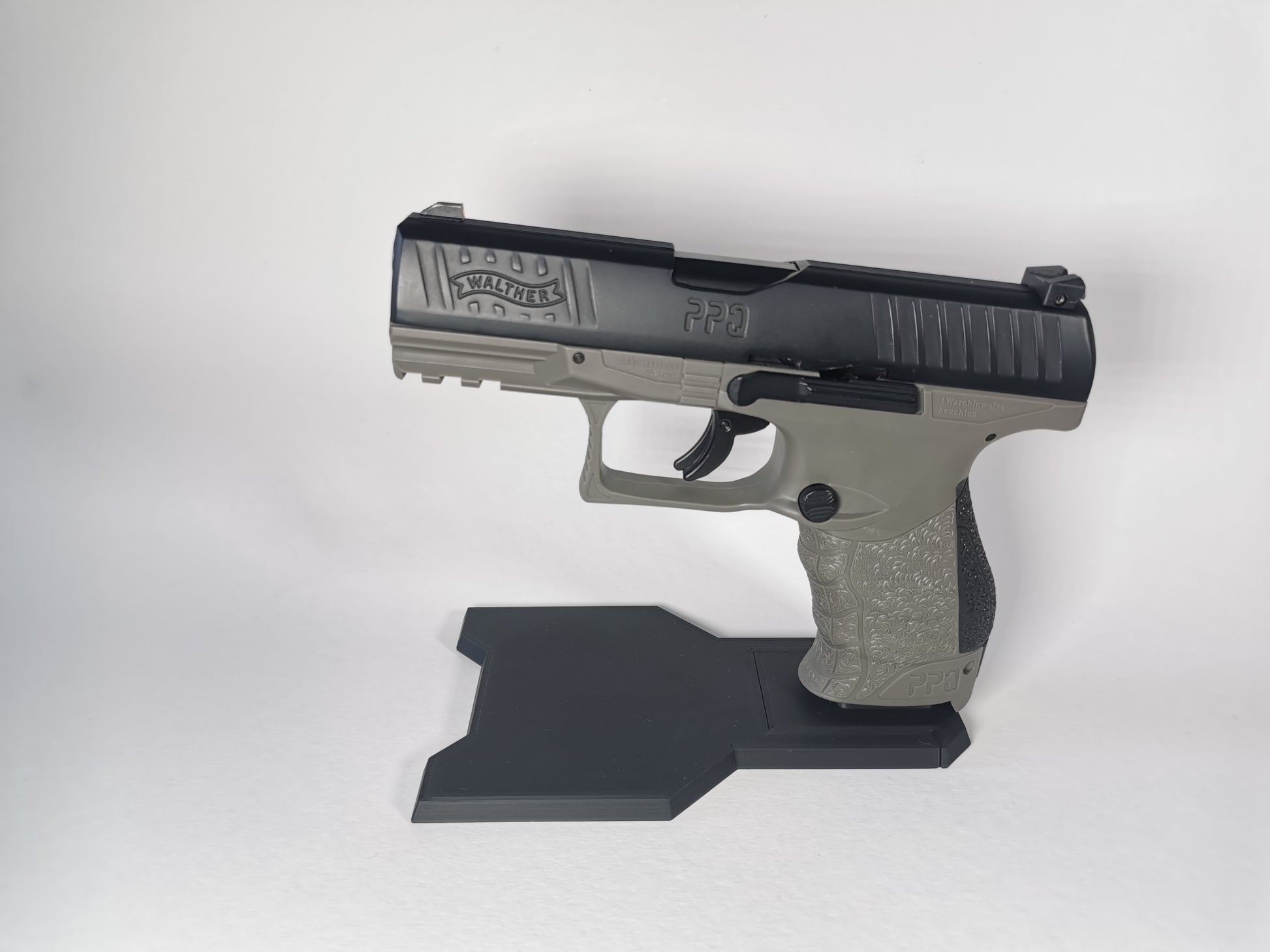 Dank des modularen Aufbaus lässt sich der Pistolen-Ständer flexibel anpassen. Du kannst Grundplatte und Einsatz in unterschiedlichen Farben miteinander kombinieren oder bei einem Modellwechsel einfach nur den passenden Einsatz austauschen – die Grundplatte bleibt dieselbe.