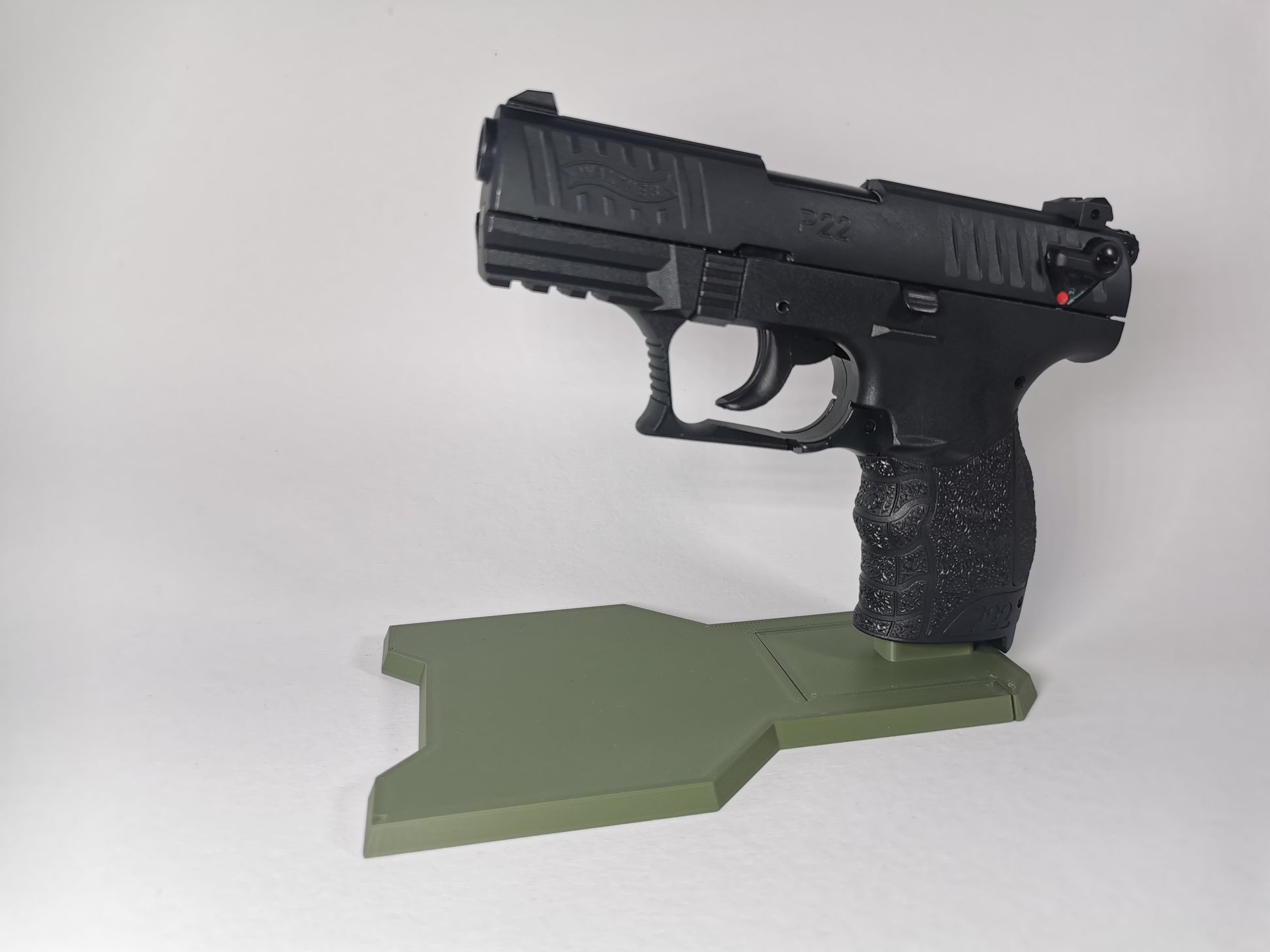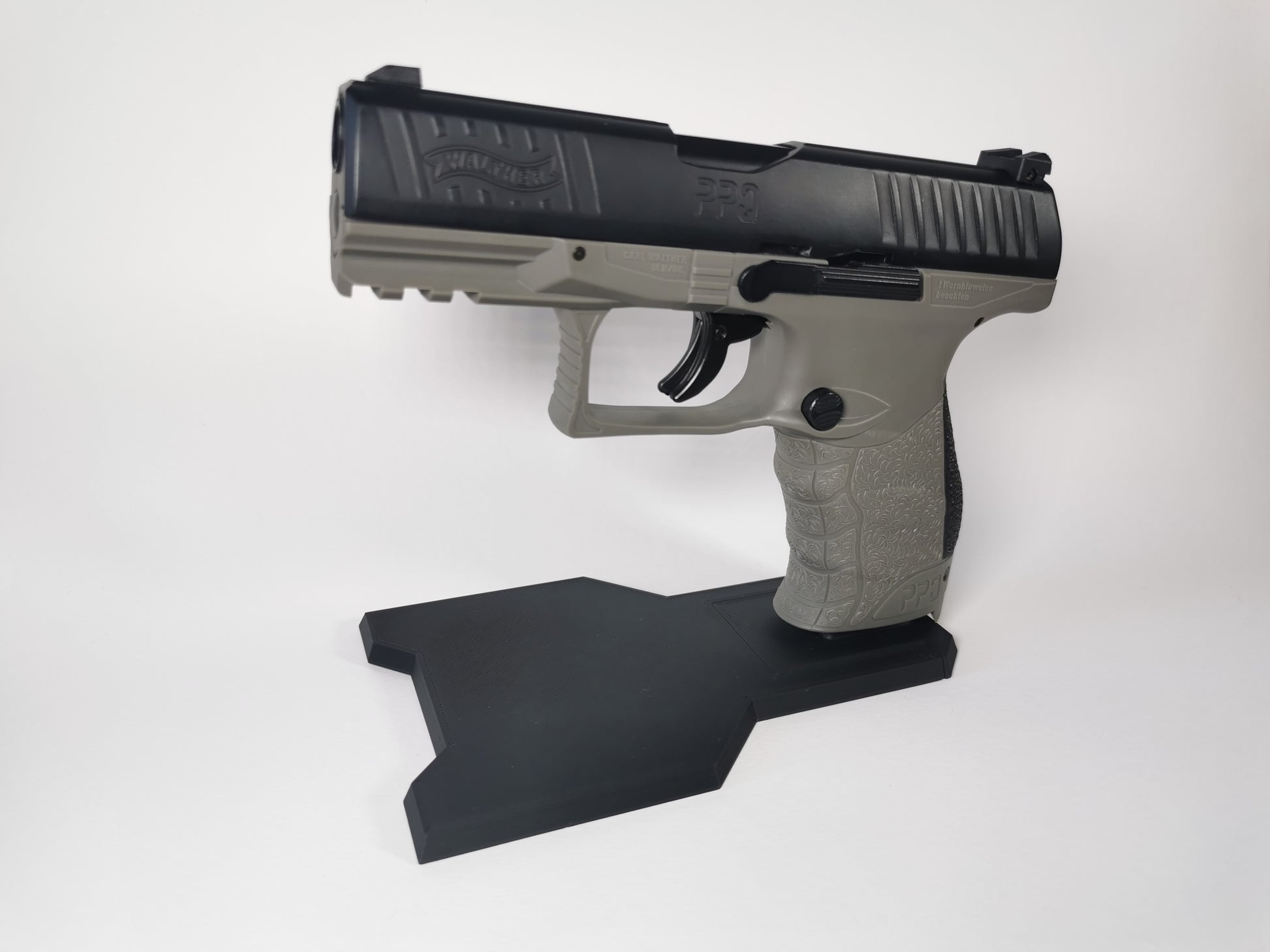 Deine Pistole liegt in einer Schublade oder steht unschön angelehnt in deiner Vitrine? Mit unserem modularen Pistolen-Ständer kannst du deine Pistole an deinem Lieblingsplatz präsentieren oder auch während des Beladens deines Magazins griffbereit hinstellen.
