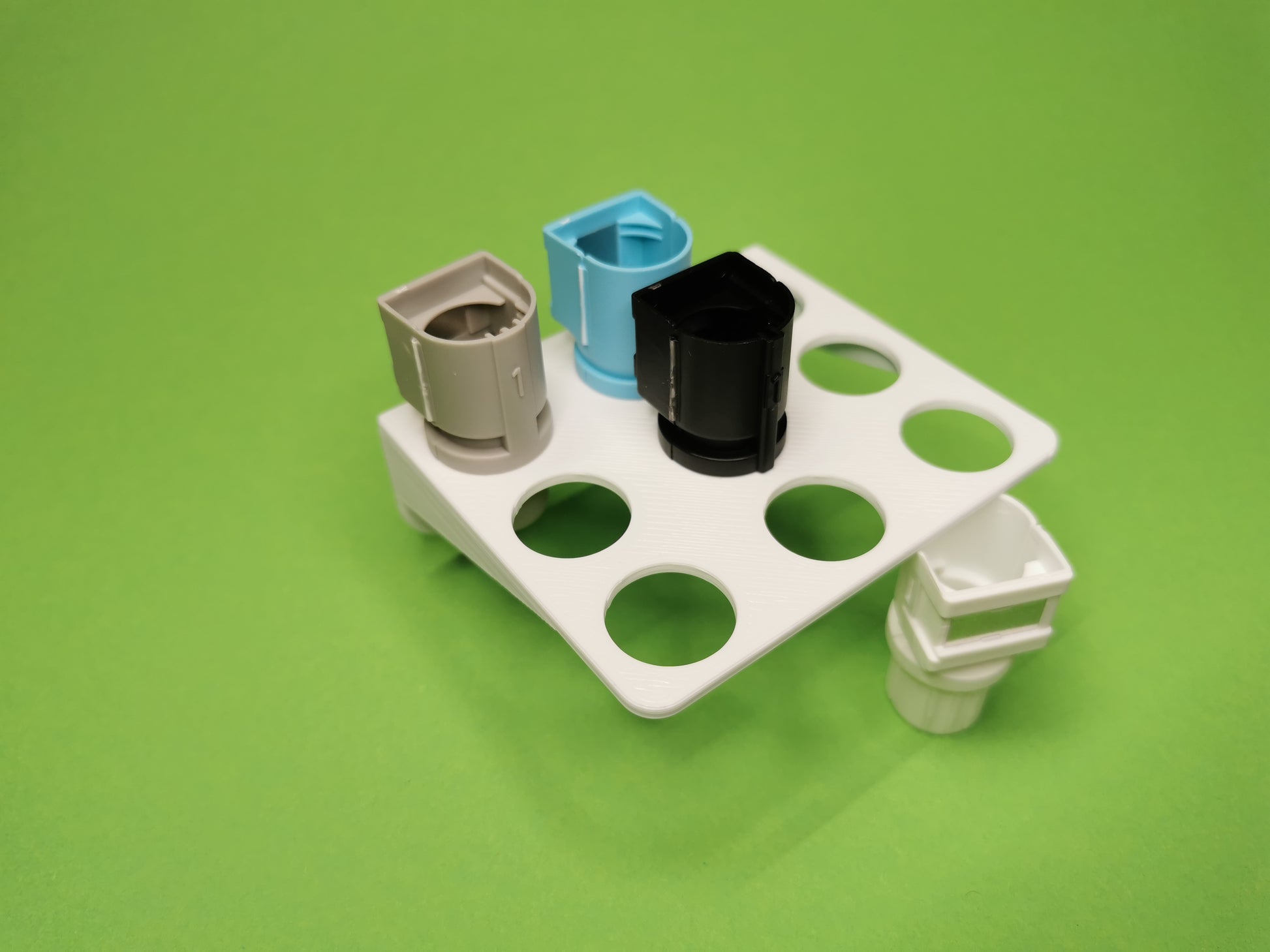 1 9er-Halter für Plotterzubehör in Wunschfarbe passend für die Ikea Skadis Lochplatte.