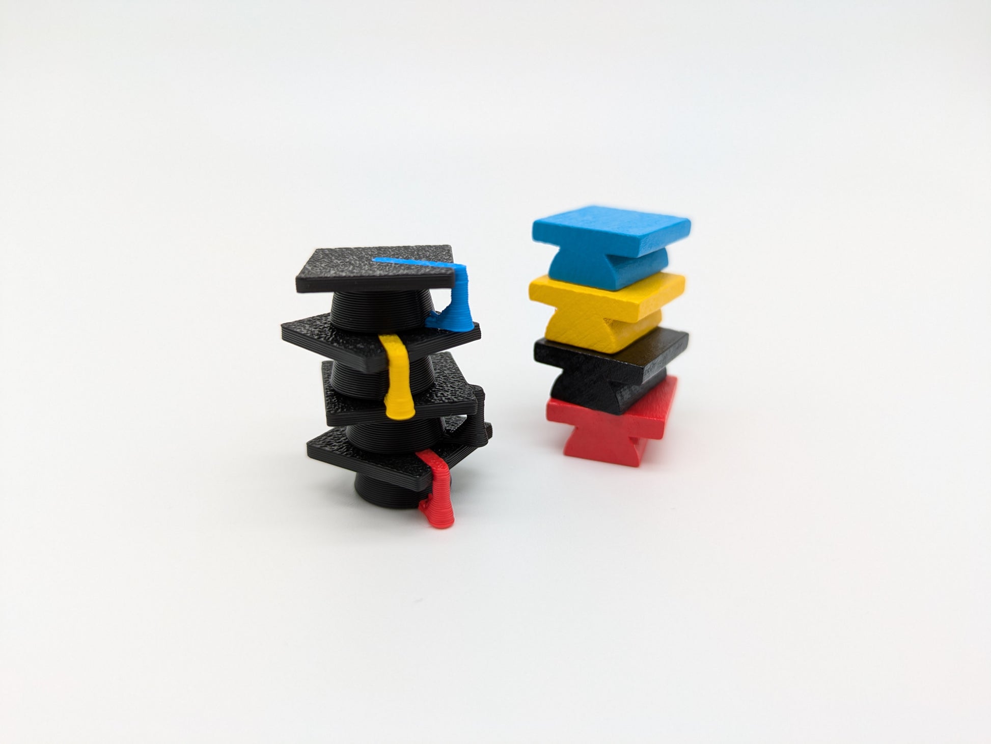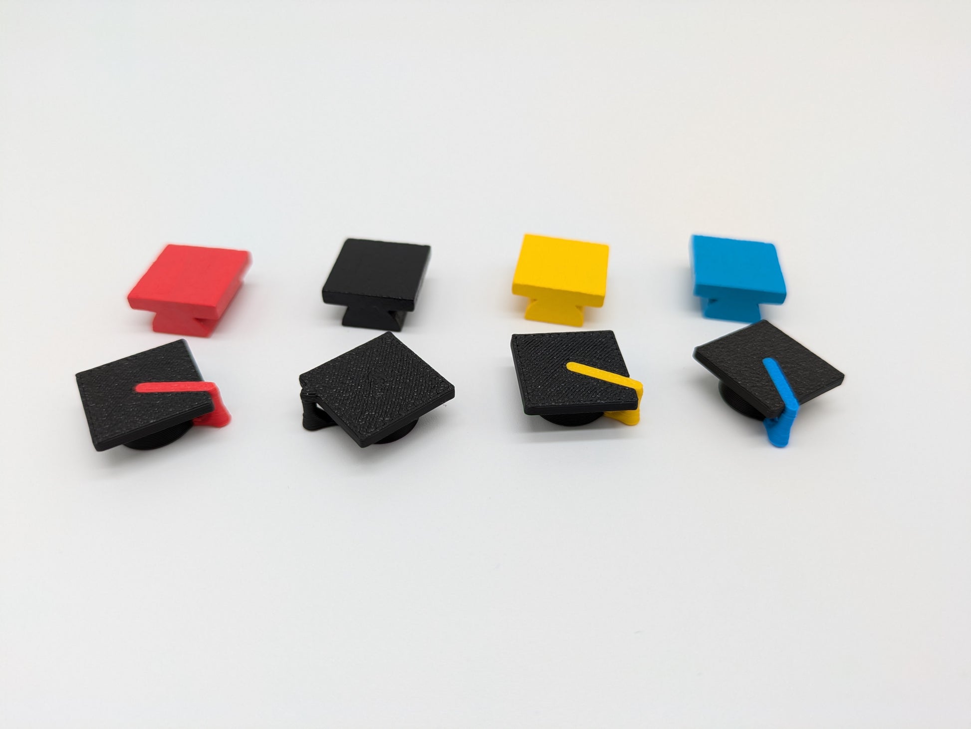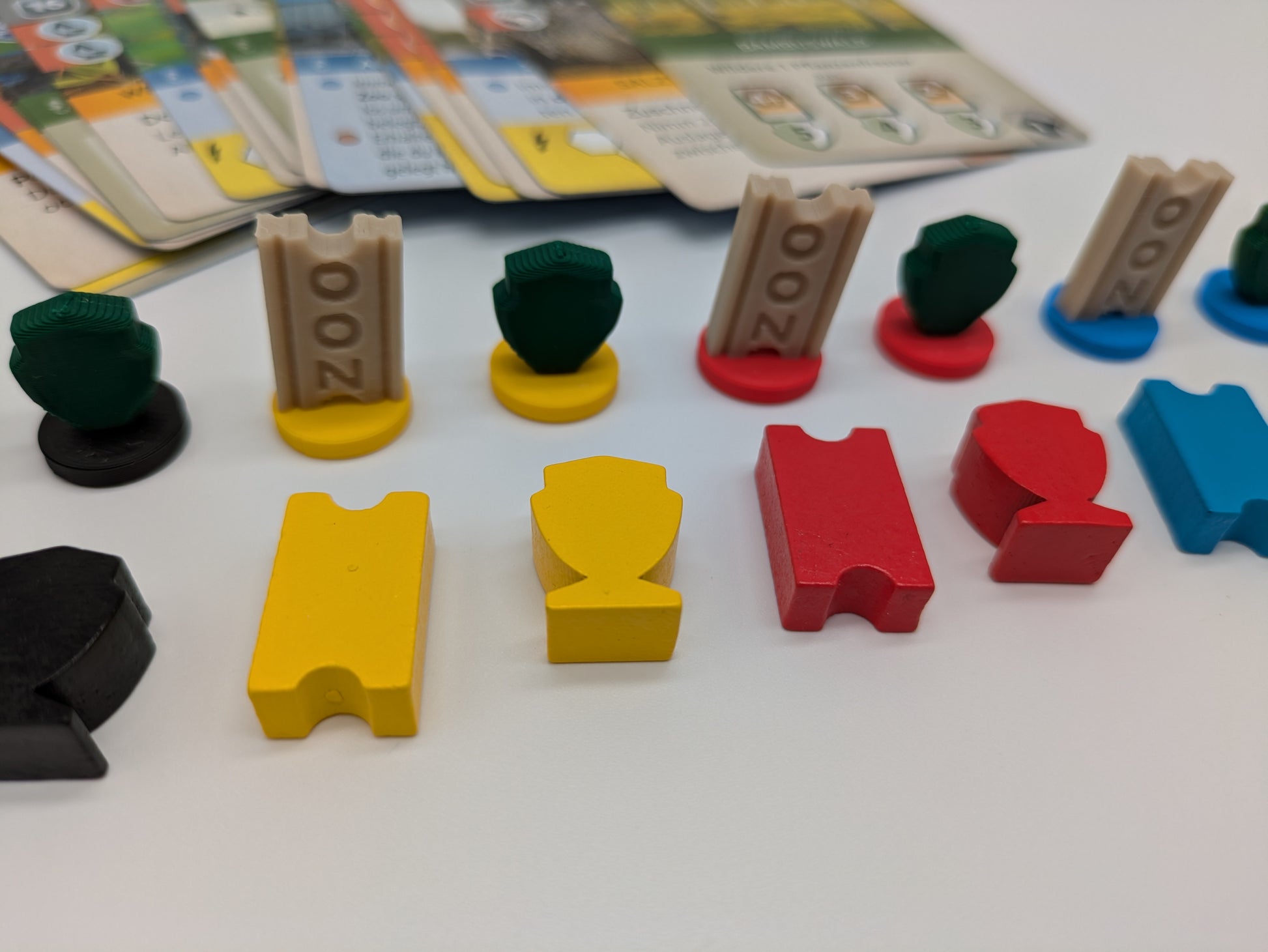12 Deluxe-Zählsteine in den 4 Spielerfarben gelb, rot, blau und schwarz. Jeweils 1 Ticket-Marker, 1 Wappen-Marker und 1 Hut-Marker pro Spielerfarbe.